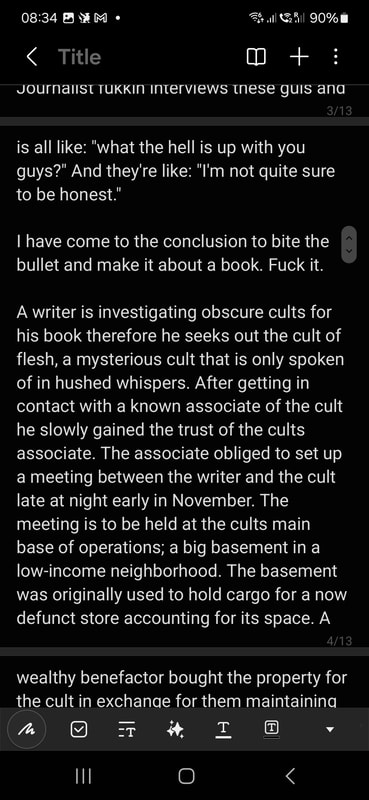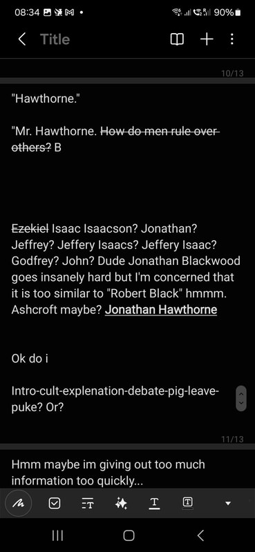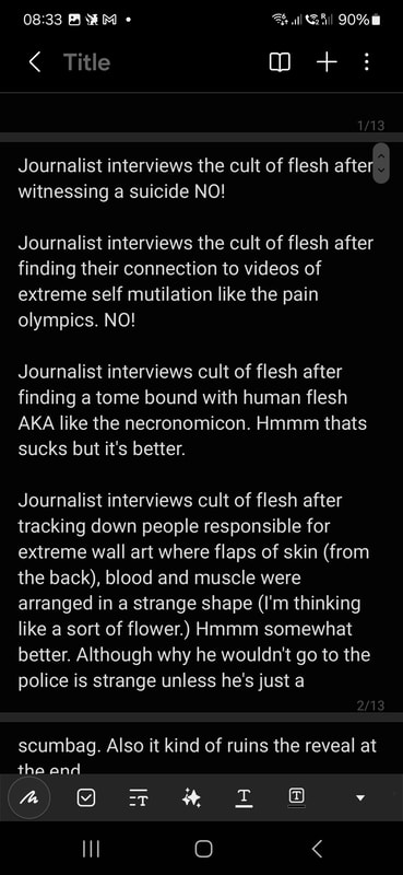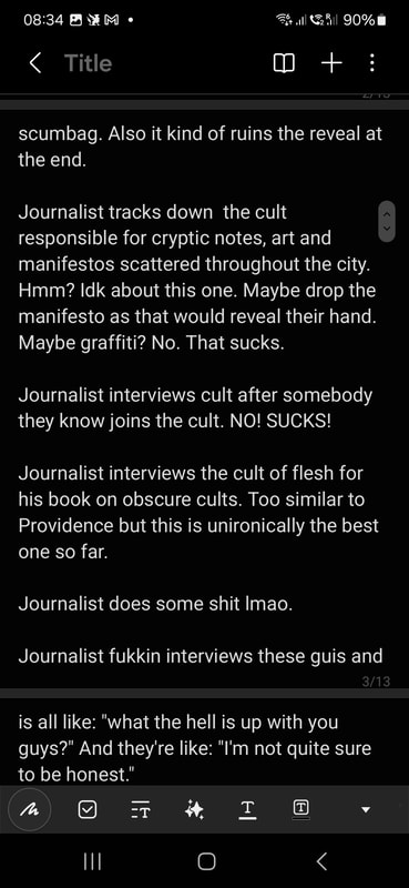 Doesn't it suck that you can't just automatically be good at something? Sadly that's not how the world works and I have to try to get the results I want despite my subpar writing skills. This was definitely the biggest source of pain and I wasted waaaAAAAaaay too much time on the writing, in fact I'm still rewriting stuff, IT'S NEVER ENDING. Anyway I needed to figure what the characters would talk about before the big horror twist. First I sort of unwittingly copied Heretic and made it about how bodily control is the ultimate form of control and the only way to truly take control of your life or the lives of others is by controlling the body, one slight problem, I don't quite believe that. I mean sure an element of truth is there but as I was writing it I immediately felt how phony it was. I was also concerned that a story about a group of people who groom and manipulate people into mutilating their bodies and preach that as liberating would be misconstrued as transphobic. Conservatives spread that kind of vile rhetoric about trans people and refer to gender affirming surgery as mutilation and I wanted to avoid that as much as possible since I am not transphobic and do not want to accidentally spread that kind of messaging.
